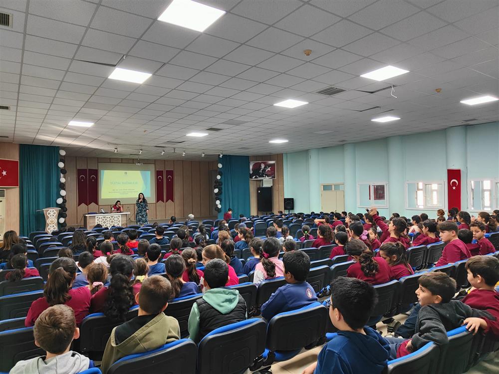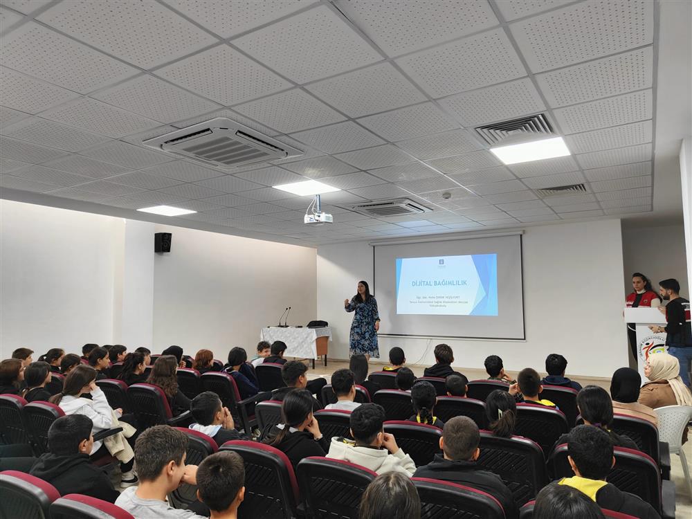 “Büyük İlçeler Güven ve Dönüşüm Projesi” çerçevesinde, Yüksekokulumuz Tıbbi Hizmetler ve Teknikler Bölümü Öğr. Gör. Pelin ZIVDIR YEŞİLYURT, Mustafa İstemihan Talay Yatılı Bölge Ortaokulu ile İbrahim Kozacıoğlu Ortaokulu öğrencileriyle bir araya gelerek “Teknoloji Bağımlılığı ve Siber Zorbalık” başlıklı söyleşide önemli farkındalıklar kazandırdı. Öğrenciler, teknoloji kullanımında denge kurma, dijital ortamlarda güvenli davranış geliştirme ve siber zorbalığa karşı bilinçli hareket etme konularında kapsamlı bilgi edinme fırsatı buldu.