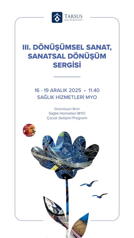 Meslek Yüksekokulumuz Çocuk Gelişimi Programı öğretim elemanı Öğr. Gör. Bağdagül Sarıdaş danışmanlığında, öğrencilerimiz tarafından hazırlanan III. Dönüşümsel Sanat, Sanatsal Dönüşüm Sergisi, 16–19 Aralık 2025 tarihleri arasında düzenlenecektir.